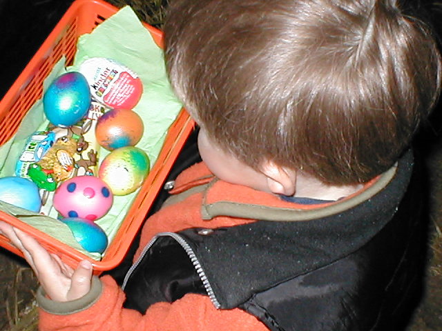 Ostern, Ostereiersuchen in der Scheune, Osterfeuer auf einem unserer Felder